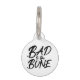 "ブラシのストローク・フォントの骨への悪い状態"を言う前部の文字とのおもしろいのタイポグラフィのデザイン。 背部のあなたの犬の名前そしてあなたの連絡先情報を加えることによってこのプロダクトをカスタマイズことができます。 白黒シンプル。