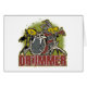 ハードロックの、重金属またはパンクロックのドラマーのための完全なギフト! 一組のスカルを強くぶつける入った毛を搭載する骨組および骨はドラムをたたきます! 緑のハーフトーンの背景を持つ大きいドラマー! ミュージシャンのための異常で、刃の鋭いドラマーのティーそしてギフト!