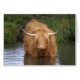 イギリスのギルドフォード州ワイイ川で入浴している高地の牛。