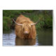 イギリスのギルドフォード州ワイイ川で入浴している高地の牛。