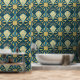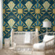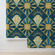 高級アールデコティール(緑がかった色)と金ゴールドパターン壁紙 壁紙