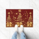 高級メタリックグリッターの木の金ゴールドと赤いクリスマスのdoormat。