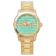 高級金ゴールドグリッターターコイズフローラギフトウォッチ 腕時計