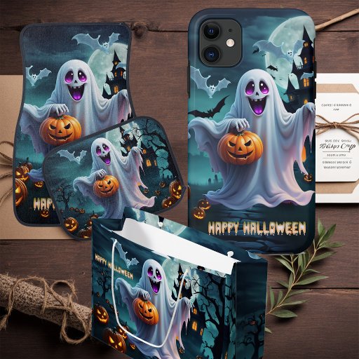 魅力的なハロウィーンデザインが伝わる。リトル、フレンドリー幽霊暗い神秘的な夜を介して。幽霊は柔らかく明るい白で、歓迎の雰囲気を作り出すいたずら好きなスマイルを身に着けている。彼のまわりには、小さな星が空に輝き、月が柔らかいトーンで輝く。カボチャは地面に穏やかな影を投げ与え、デザインは暖かく、秋の気分。