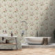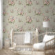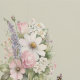 JUMBO SCALE 24インチパターンの繰り返し。銀淡い色のセージ緑色。魔法の妖精の壁紙は、コテージの庭の花と野生の花の植物性のフローラの花束は、ミツバチ、蝶と小さな女の子の妖精のペアを持つ。大小のはかりで測宇宙で複数の色の方法で利用可能。国際的にライセンスを受けたアーティストでデザイナーのAudrey Janne Roberts ©が制作し、グラフィカルにデザイン。