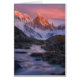 日の出のalpenglowの下の氷河で覆われた水は秋色によってpuncuated Cerro Torreでつきます。