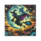 ハローウィンパーティ金属美術。 .ほうきを取って飛び越えろ!飛んでいる漫画不気味の美術スタイルで行われた満月のグラフィックの前の箒のにポップ・アートの魔女。