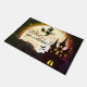 24インチx 36インチのドアマットが用意されている。明るい満月の前飛んでいるに、城の上に魔女がいるハロウィーンに間に合う。こうもりと山が手前にある。この書式は裏地にスリップまたは滑ることない。