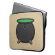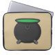 魔女が呪文やポーションを作るときに使用する緑の煙と可愛い漫画の黒い釜のイラストレーション。このハロウィーンデザインは、魔法愛好家とブラック魔法愛好家のためのギフトアイディアである。