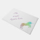 魔法が始まるUnicorn Door Matの右下の角に美しい虹グラデーションの魔法のユニコーンを持つ。