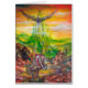 青カラフル鮮やか色、オレンジ色、黄色、紫、赤褐色、白い色のアクリルの2009、巨大な翼を持つ彼のグリフォンにブラダマントとネグロマンサーのデュエル。Orlando Furioso、Canto 2ルネッサンス書トの詩人Ludovico Ariosto 1516によって。