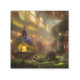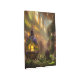 AIが創り出した超現実的な金属の壁アート絵画は、豊かな植物と床に魔法の妖精の家を持つ美しい過成長したアトリウムのデジタルアートを特徴としている。