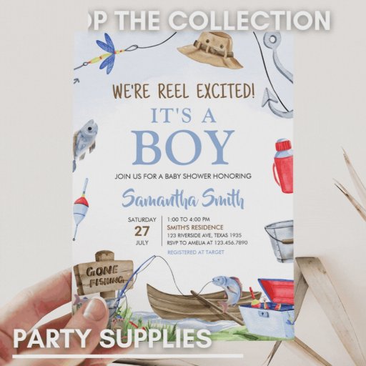 魚釣りベビーシャワーメッセージカード ギフトタグ