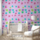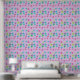 鮮やかなピンクのブルーパープルライムグリーンの花パターン 壁紙