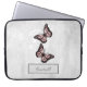 鮮保護やかなピンクの蝶のラップトップスリーブを搭載したノートパソパーソナライズされたコン。ラップトップスリーブデザインは、灰色の背景に白いフローラつる植物の上に置かれている鮮やかな蝶をグランジ特徴とする。このデザインで利用可能な追加アイテム。パーソナ連絡リゼーションのサポートは私に直接願う。