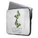 鮮保護やかな緑の蝶ラップトップスリーブを搭載したノートパソパーソナライズされたコン。ラップトップスリーブデザインは、灰色の背景に白いフローラつる植物の上に置かれている鮮やかな蝶をグランジ特徴とする。このデザインで利用可能な追加アイテム。パーソナ連絡リゼーションのサポートは私に直接願う。