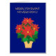 鮮やかで祭り的なクリスマスカード。ポーランド語のクリスマスメッセージ(Wesolych+Swiat)と、深い青い背景に金箔効果のポットに入った鮮やかな赤いポインセチア。デザインはジュディ・アダムソンによる手描きの紙コラージュで、自由にメッセージを書き込むことができます。