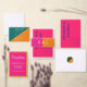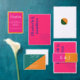 明るいピ鮮やかンクとオレンジの日の出のトーンを備えたカラフルミニマ結婚リストのコレクション。色の組み合わせ
