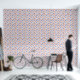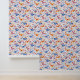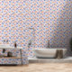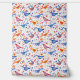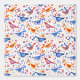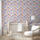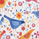 白い背景に明るい水色の黄色の青と赤の鳥と花。オリジナルアートby Nic Squirrell.