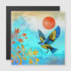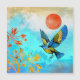 美しい青色の空とオレンジ色の太陽を持つ黄金の木に着陸する青と金ゴールドの鳥を描いた豪華なデザインはっきりした。