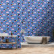 鳥カラフルと虹の模様(青) 壁紙