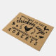 "葉のリースおよび卵と4つの鶏のシルエット(1羽の雌鶏、1羽のオンドリ、2羽の若めんどり/ひよこ)が付いている鳥小屋への歓迎"の文字。 フェイクなバーラップの背景および黒いシルエットが付いているこのシックで素朴な農家の玄関マットにあなたの姓を加えて下さい-農家および鶏の恋人のために完成して下さい。