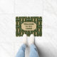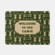 キャビンやウッドランドの家に最適な可愛いドアマット。暗い森の緑の背景に光金ゴールドバック鹿の頭のシルエットと白い矢印のパターンを特徴とする。センターでは、ダークフォレストグリーンにもカスタムあなたの文字と一致するラベルである。現在は「キャビンへようこそ」と書かれているが、簡単に自分のカスタマイズ文字に届くかもしれない。
