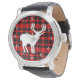 鹿スタグシルエットオンレッドブラックプレイド 腕時計