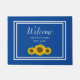 青楽しむいエレガント背景のモノグラム歓迎フォーマット。白とシンプル白の縁どカスタマイズ可能なレタリングは、あなた自身の情報を追加することができる。黄色いヒマワリは、素朴なスタイルを加え、お客様の家や別荘への歓迎に最適。
