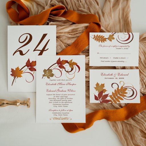 秋結婚をテーマにした座席表のポスターデザインエレガントは葉、秋の色のスクロールとと新郎新婦の名前のモノグラムとテーブル番号とゲスト名のための結婚テンプレート文字と新郎新婦の名前のモノグラムを備えている。