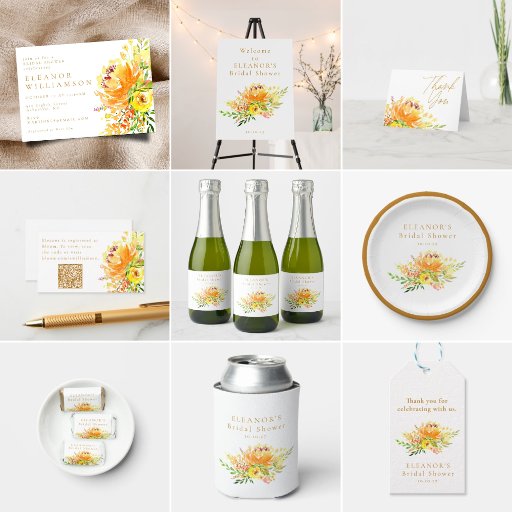 エレガント黄色がかったオレンジ手絵を描花春夏秋秋素朴な水彩フローライラストレーショントレンディー花庭スタイリッシュの花束シックな自然の緑ブライダルシャワー名日付