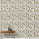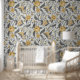 黄色と灰色のジャコビーンフローラルパターン 壁紙