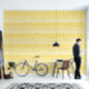 黄色はっきりした幾何学的な太陽与えの壁は新しモダンいアパートにシックなエッジ。