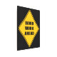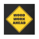 厚い黒いサンセリフ警告フォントの前に木材のクラシック黄色のダイアモンドの注意の道路のサインが働く。大工や木工のための完璧な贈り物、クラシックのサインの言葉のパンと、前方の道路の仕事。