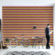 水平の黄色と紫のストライプデザインを白黒の線の薄い線で分けストライプた面のパターン