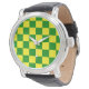 黄色の緑のチェッ市松模様にクパターン 腕時計