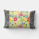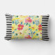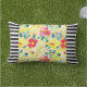白黒イエロストライプのフローラルパターン可逆性腰部装飾用クッション