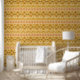 Boho黄色金ゴールド柄、皮むき及びスティック壁紙。