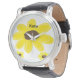 黄色ひまわりフローラ水彩追加の名前文字 腕時計