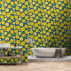 黄色レモンパターン(青) 壁紙