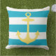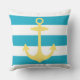 黄色航海のいかりと青カリブのいストライプ クッション