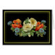 ヴィンテージかわいらしフローラアート白と赤のケシと青いトウモロコシの花を二重の金の枠で囲まシンプルれた。