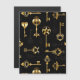 黒い背景にアンティーク、金ゴールド、シルエット鍵のシームレスなパターン。