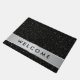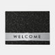 スタイルのあなたのゲストを誘う上品で黒いグリッターの歓迎のドア・マット。 フェイクで黒いグリッターの一見の玄関マットは歓迎された単語の銀製バンドを、あなたがカスタマイズことができるそれそれをユニークおよび特別にさせるために備えています。