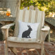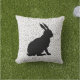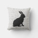 白い背景に黒い水玉模様で黒いシルエットで座っているウサギのサイドプロファイルを持つホームデコ用の屋外枕。