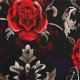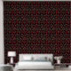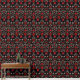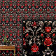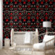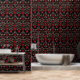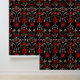黒いドラマチックなゴシック様式のダマスク壁紙に赤とブロンズ