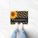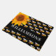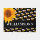 幸飾せな笑顔の黄色と黒のバンブルミツバチと大きな水色のヒマワリとシックな黒の背景。名前をカスタマイズして追加する。