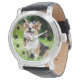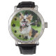 ペットパーソナライズされたの写真をプリントした腕時計。数字の代わりに、時間は黒い前足のプリントでマークされる。