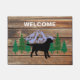黒いラブラドールの輪郭のラブラドールファンのための常緑の木の玄関マット! 常緑の木および山および木デザイン。 野外活動のために素晴らしいキャンプするハイキングを好んで下さい。 Naomi Ochiai著作成される。