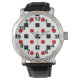 黒い正方形レッド水玉模様パターン白BG 腕時計